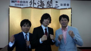 我が道場生でもあり、神戸市会議員の外海開三さん(左)の懇親会に出席させていただきました。