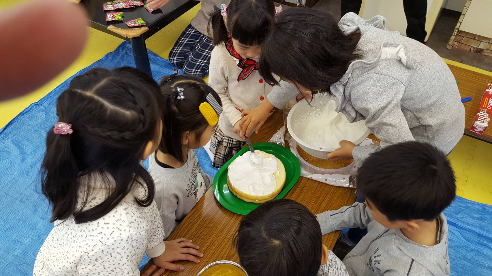 各グループに別れ、デコレーションケーキを作ったり、今回は子ども達が動き回る運動会形式ではなく、クイズ形式のパーティーで楽しみました。