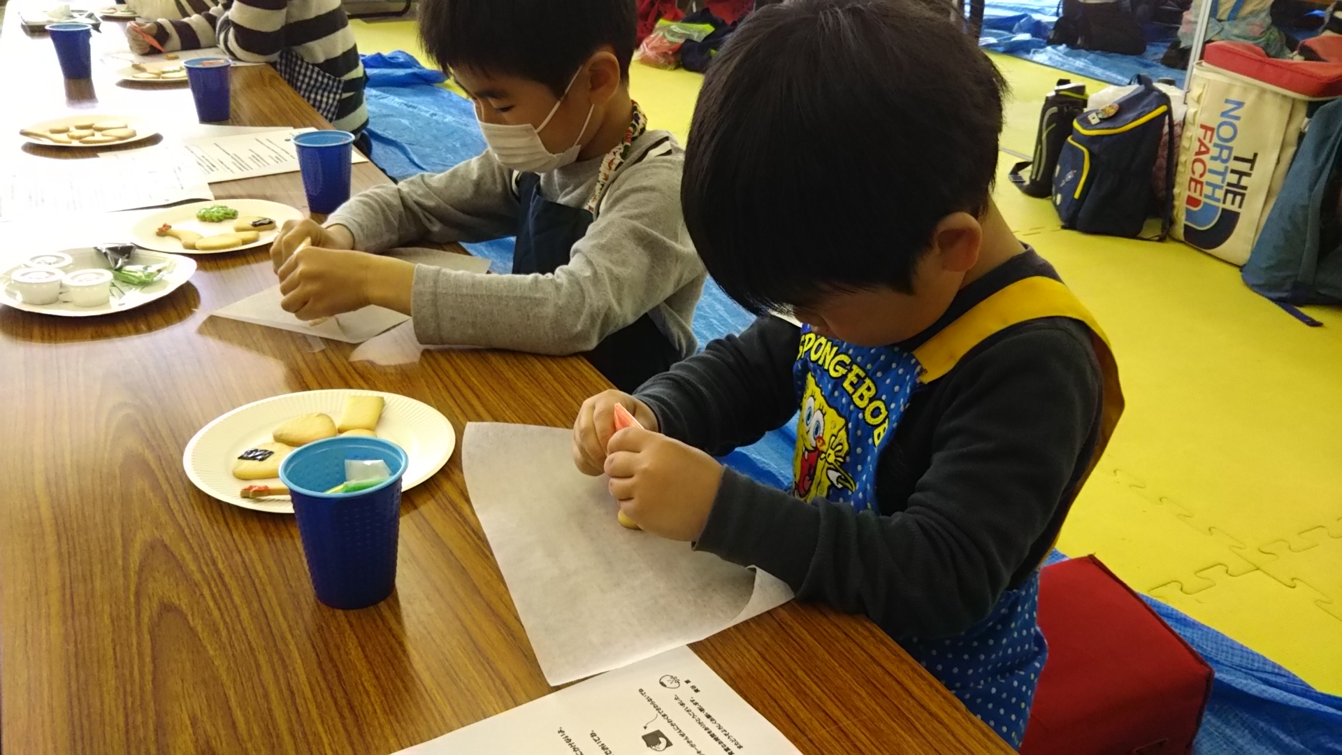 「あーつかれた・・・」といいながらもアイシングするときは集中モードに突入。クッキーからこぼれ落ちたアザランは必死で拾い「おいし~」と食べる男子軍団。女子は落とさないように慎重です。
